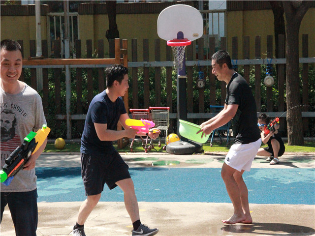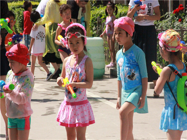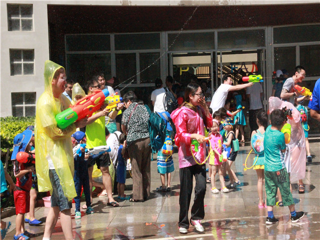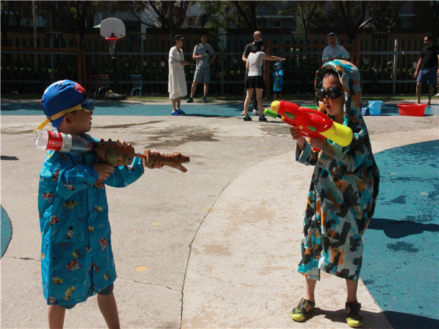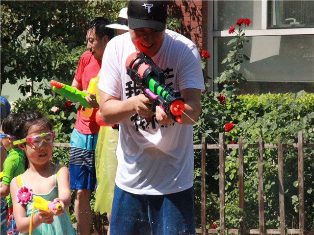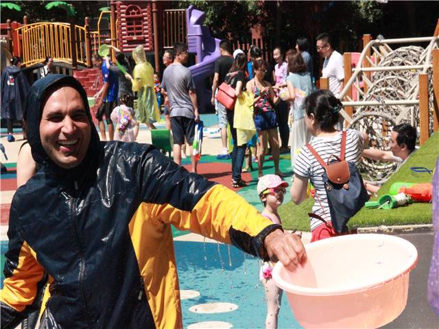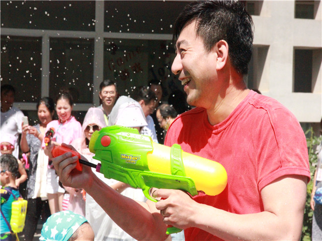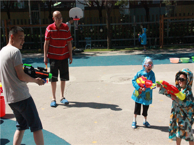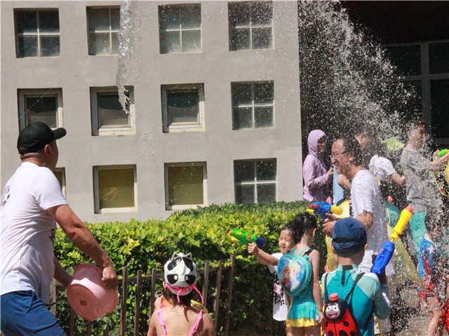 像泼水节一般,孩子、老师与家长们互相用水表达着喜爱,你看水与笑都在他们脸上。