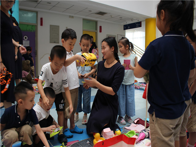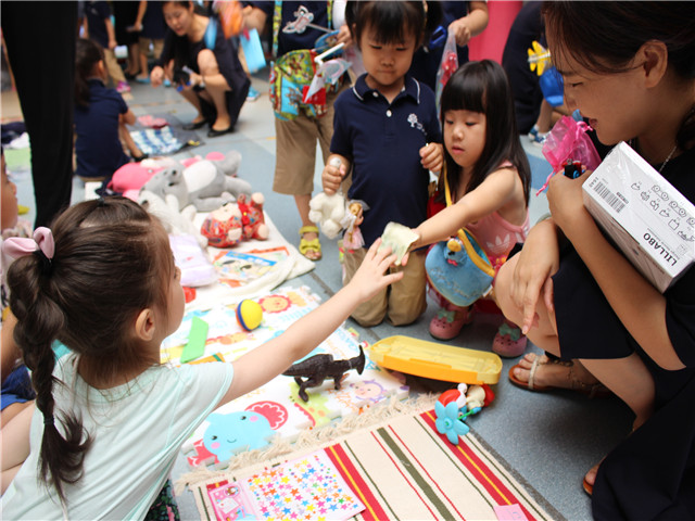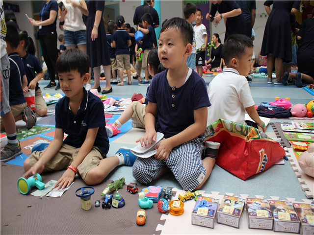 对于中班的孩子来说,自己买卖物品还是第一次尝试,于是义卖还没开始,孩子练习找钱、讲价就已经开始,义卖当天地摊上“明码标价”的玩具、衣物、书籍都是孩子们自愿捐赠的,孩子们吆喝着小班的小朋友来买,现场十分热闹,好像真的到了一个大集市一样。