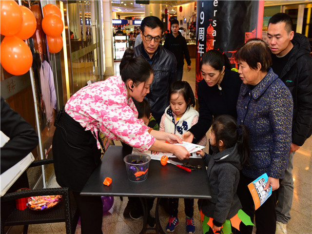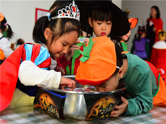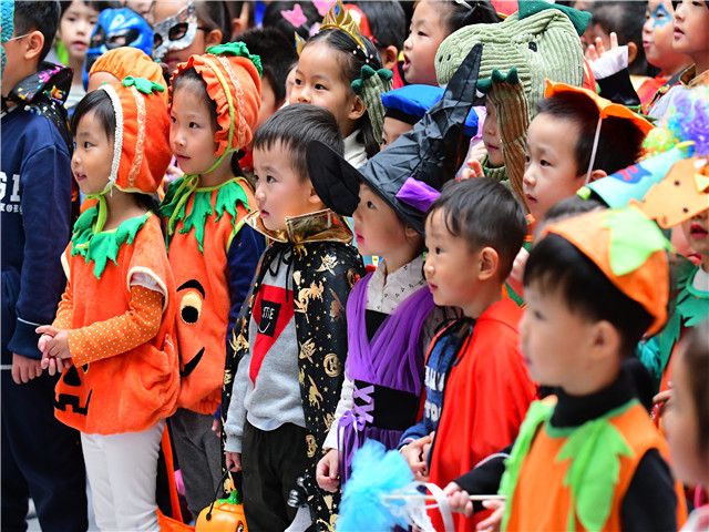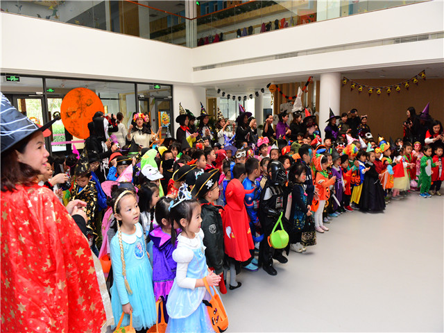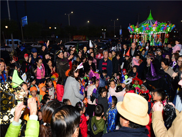 夜幕降临,游戏与冒险还在继续,小怪兽们在同样“盛装”出席的家长陪伴下,来到了欧陆广场,与那里的商家继续游戏,小朋友们鼓起勇敢大胆上前说出“trick or treat”,看!他们的南瓜灯里转满了甜甜地糖果,旋转木马一圈又一圈,带来了阵阵的欢笑。万圣节的活动让每个孩子们满载而归,留下的不只是游戏与糖果,他们充分在感受西方文化的同时,也锻炼了自己的勇气,也许这就是我们庆祝万圣节的意义。
