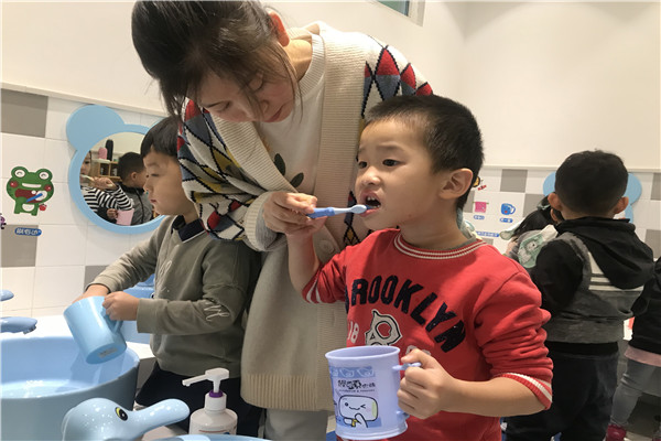 防龋氟化泡沫前,孩子们认认真真地把小牙齿刷的干干净净。在氟化泡沫时,小朋友都特别勇敢很配合完成牙齿氟化泡沫。虽然有个别幼儿很害怕,通过老师的引导下,也慢慢的消除恐惧心理并积极的配合口腔大夫完成每个步骤。