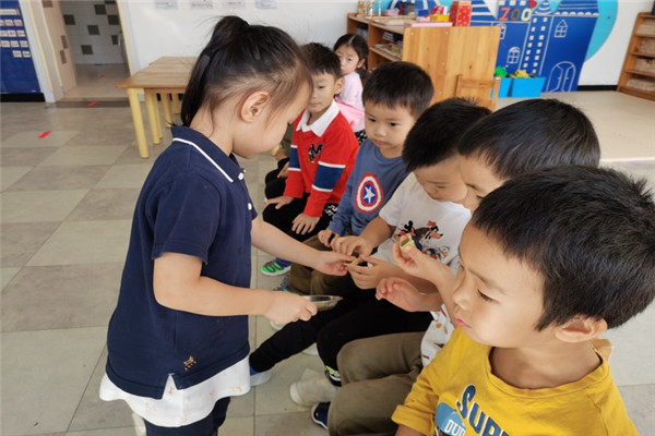 小朋友将自己的月饼分享小伙伴,园长妈妈和保健医也收到惊喜,大家一起品尝不同风味的月饼,孩子们通过感官探索:闻、看、品,感受到中秋节的甜蜜和幸福。