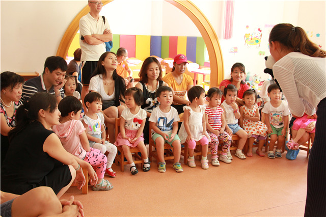 为了迎接小朋友,班级的环境都经过精心的布置,每一位老师都在班级门口热情的迎接小朋友,进入班级的小朋友也和老师开始了一天的活动。他们在爸爸妈妈的陪伴下学习喝水,如厕,盥洗的方法等。有了家长的陪伴,孩子们一点也没有感到陌生与胆怯。他们认识了新的老师,新的小朋友,还有很多各种各样的玩具,在老师的带领下熟悉了班级各个区域。除了生活上的熟悉,教师们还精心设计了丰富多彩的游戏活动,“手指谣”、“彩虹伞”、“动物小汽车”等活动,每一项活动都深深地吸引着孩子们,亲切的老师,温馨愉快的氛围,使他们很快地喜欢上了幼儿园。最后老师建议家长引导自己的孩子邀请同伴进行自由活动,孩子们开始认识自己的小伙伴。