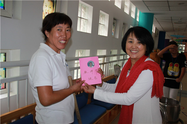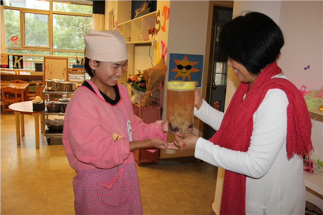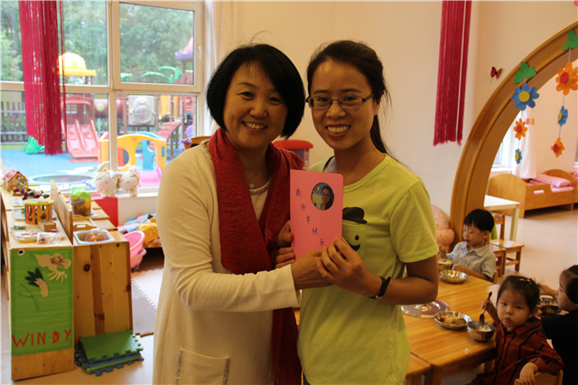 在“爱与创造”的幼儿园里老师们很幸福,园长妈妈为每位老师亲手制作了祝福贺卡、为老师熬制了红枣银耳汤,并亲手盛给每位老师。