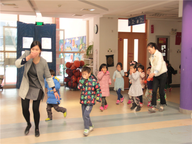 为了进一步加强幼儿园安全工作,营造安全、稳定、和谐的校园环境,北京市恒信彩幼儿园于2016年2月26日上午对全园师生进行了安全疏通消防演习活动。此次消防演习的目的是为了让孩子从小学会自我保护,做到在发生火警火灾时临危不乱,有序、快速地按照消防逃生路线安全疏散。上午11:10左右,孩子们户外活动刚刚回到班级,忽然听到紧急的警报声,各班教师迅速按紧急预案的疏散线路带领幼儿捂住口鼻,猫着身子,分两侧楼梯迅速且有序下楼。在班级老师的带领下孩子们很快地集中到幼儿园大厅安全地带,老师迅速地清点幼儿人数,并向李主任报告。整个疏散活动只用了2分多钟。
