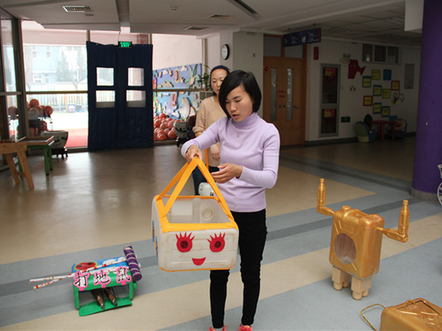 三月是恒信彩学校的十二个品格月中的环保月。此次的技能比赛主要是以利用废旧油桶制作户外玩教具。各班保育员根据班级幼儿年龄段的特点,以及上学期幼儿体能测试弱点项目--投掷,制作了适宜幼儿年龄特点的玩教具。保育员依次介绍了自己的玩教具,最后由园长妈妈对本次大赛进行点评及总结。