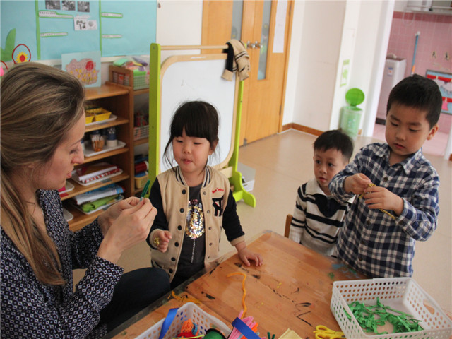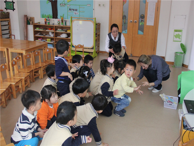 在围圈活动中,Marina引导小朋友们有礼貌地和家长问好,“Good morning”。活动中,Marina根据不同幼儿的发展,让幼儿自主选择自己的参与材料,幼儿参与情景式游戏活动,幼儿会听懂Marina的语言并做出相应的动作并简单交流说,“Res NO Here Give me five”和手中材料教具的名称。幼儿在活动中探究,参与性高,互动性强和乐于表现自己。活动寓教于乐,充分体现了孩子的主体参与性。同时把尊重、相信孩子、充分给予孩子操作探索的机会等教育观念传递给了家长。家长们近距离地观看小盆友们游戏,家长们笑在脸上,喜在心里。
