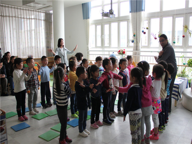 芒果班的Teacher Ray 在课堂上与孩子们一起展示了这个学期以来孩子们所学的英文课程进行了展示,在体育游戏里,孩子们和老师一起参与了The Cat catch the mouse的游戏,孩子们很享受英文课堂,在游戏互动环节小朋友们更是意犹未尽。