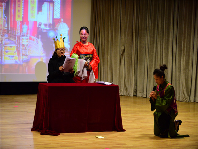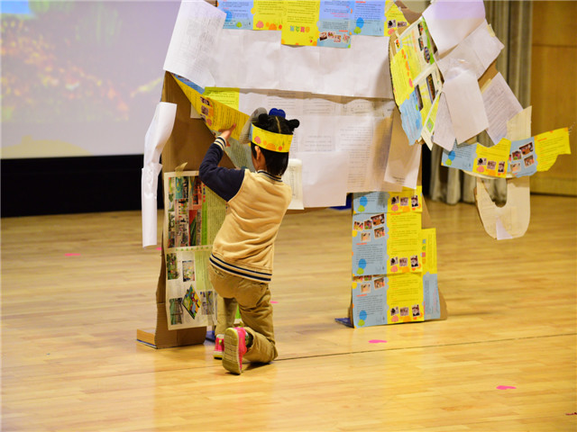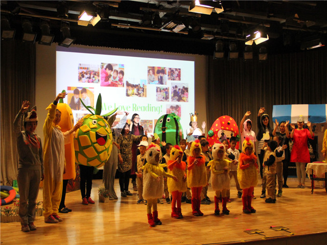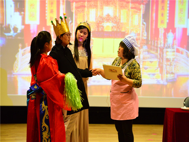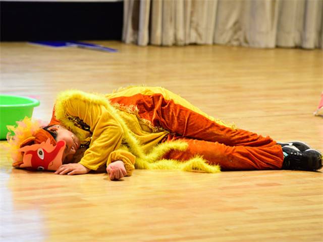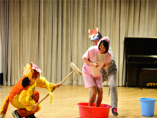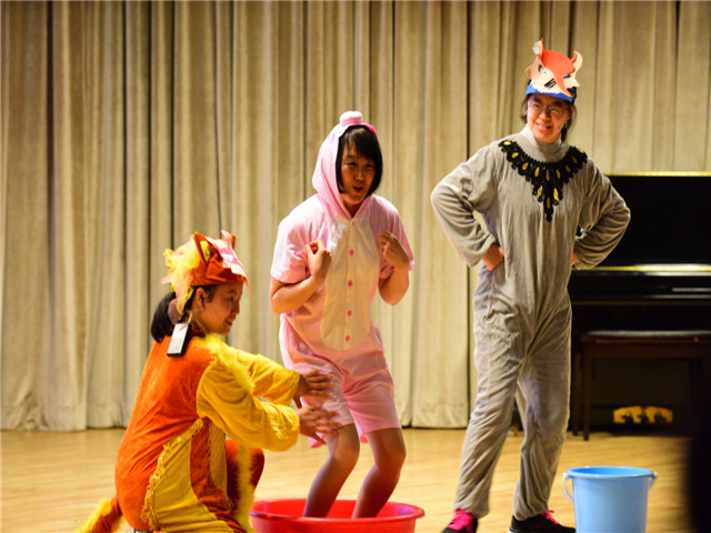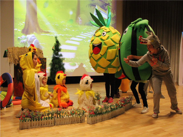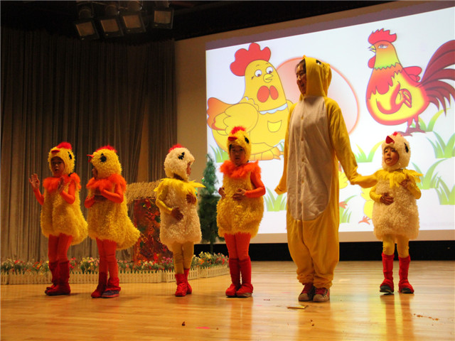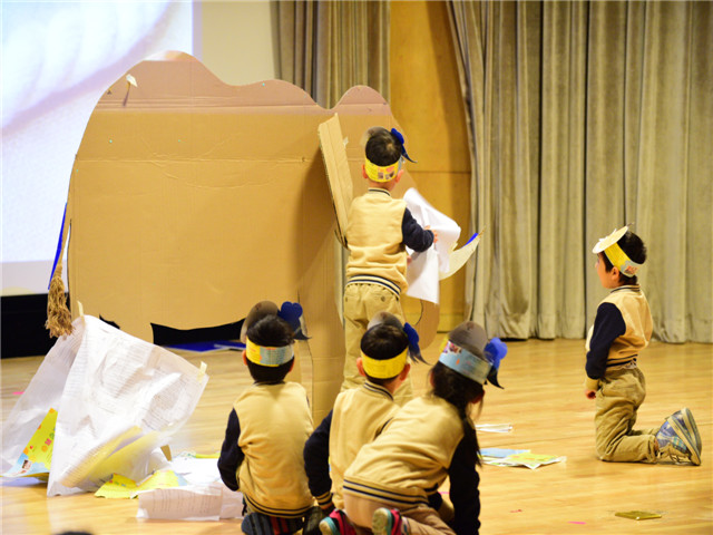 为了让绘本剧的表演色彩更绚丽,教师们精心地编选剧本,惟妙惟肖的表演博得台下小观众们阵阵笑声和掌声,使孩子徜徉在如梦如幻的绘本海洋里。“国王加油!国王加油!”“胖国王”在孩子们的呼喊声中努力锻炼着,不一会儿摇身一变,一下跳出了一个“瘦国王”。孩子们欢呼着,拍着手,脸上洋溢着幸福的微笑……报告厅里欢声笑语。