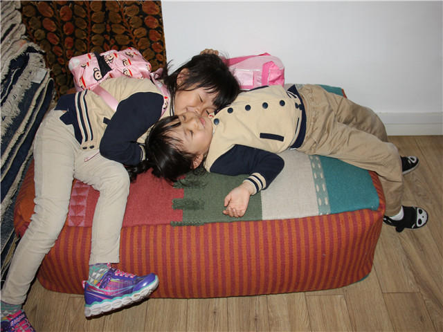 小朋友们正在享受躺在柔软地毯子上的时光