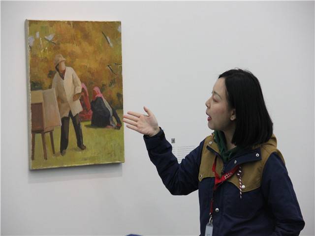 讲解员姐姐为小朋友讲解王音的作品