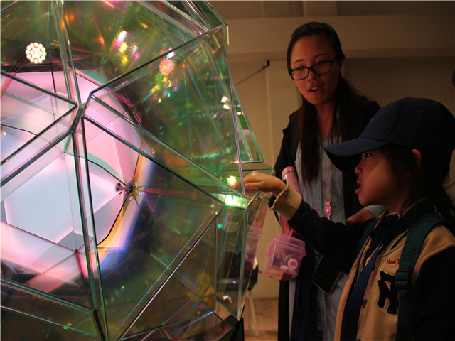 艺术之旅的第三站 —— 尤伦斯当代艺术中心(UCCA)展出的宝马概念车展。在本次展览中,小朋友们看到了 BMW VISION NEXT 100。它是一辆酷炫的概念车,诠释着关于未来的自动化驾驶。小朋友们还参观了一件玻璃材质的灯光装置作品。当小朋友把手放置在手印感应区,装置的表面将呈现小朋友衣服上的颜色。小朋友都很想体验这个玻璃球的神奇。