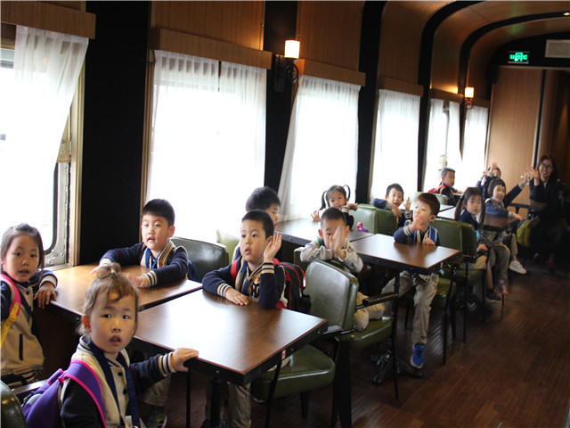 艺术之旅的第四站 ——751火车头广场。当来到火车餐厅时,孩子们刚踏上门槛,香气扑面而来,情不自禁地说:“该吃饭啦~”话音刚落,顿时笑声四起。