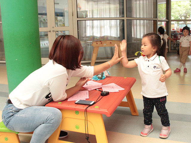 每名小勇士在闯关后,都会和评委老师认真的说声,“谢谢”,并深鞠一躬以示感谢。老师们会为每位小勇士点评,以击掌表示祝贺,以握手表示鼓励。