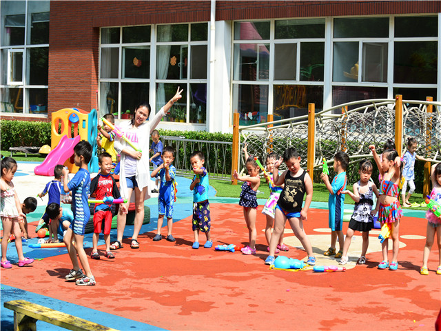 为了让幼儿度过一个快乐而又有意思的儿童节,恒信彩幼儿园的老师为孩子们准备了为期一周的丰富活动。六一活动之四是好玩的水。因为幼儿对水的喜爱是一种天性,只要有时间、有机会他们总爱在家里或幼儿园里玩水、嘻闹,但有时因受到环境条件的制约而无法尽兴地玩水。为了充分满足孩子们的兴趣,我们组织了好玩的水这一活动。活动前老师告知家长为幼儿带水枪和泳衣凉鞋来园,家长们积极配合,活动前孩子们高高兴兴地穿好自己的装备。