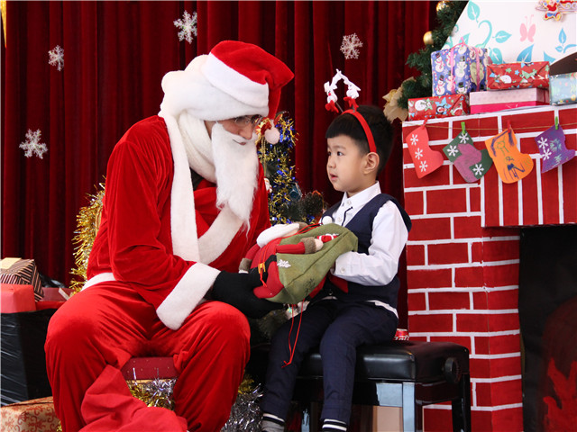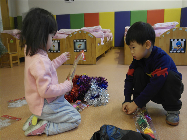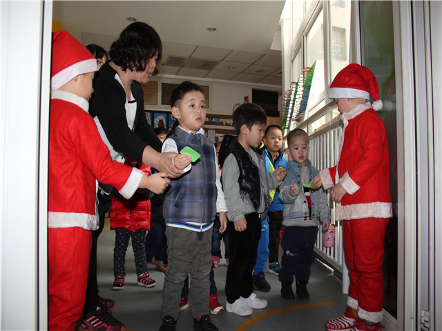 每一位宝贝都怀着兴奋而激动的心情进入了圣诞屋,等待圣诞老人派发礼物。伴着圣诞祝福歌,每一位孩子拿着圣诞老爷爷的礼物,心里荡漾着无比的快乐、幸福。