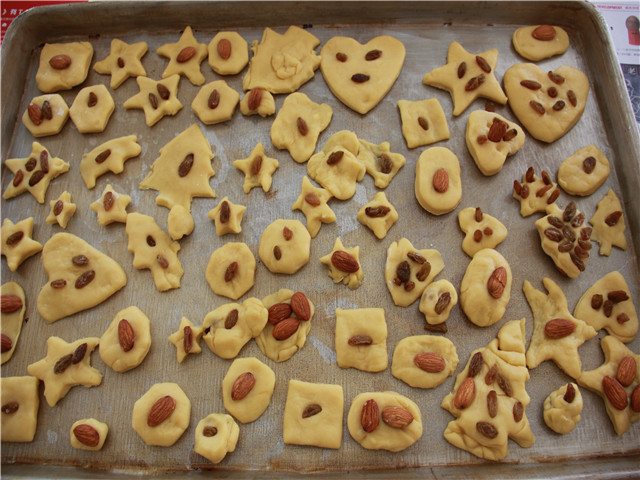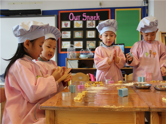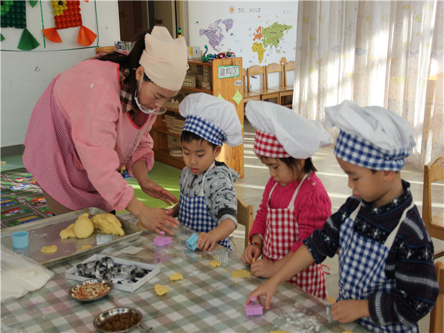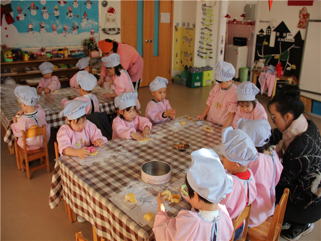 星期四是制作圣诞创意饼干。活动开始前,食堂的叔叔为小朋友们准备了许多可爱的饼干小模具以及用黄油鸡蛋精心和制的面团。在老师们讲解了制作饼干的要领后,宝宝们洗净小手,给桌子摊上桌布,一个个摩拳擦掌、兴致盎然……自己尝试揉面、分团、自选模板压做小饼干,他们用自己灵巧的小手,让圣诞树、麋鹿、北极熊、小白兔等形象栩栩如生的呈现在面团上。