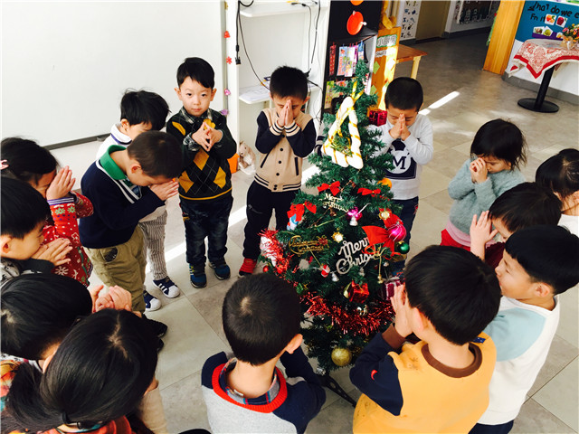 圣诞周的第一天,整个北京被雾霾笼罩着,但是孩子们的热情没有消散,依旧开开心心的来到幼儿园,并且制作了各种各样的圣诞贺卡来装扮漂亮的圣诞树。孩子们挂上一圣诞贺卡,在圣诞树下许下了一个个美好的愿望。