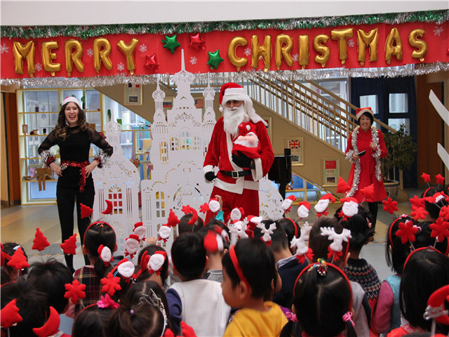 12月23日上午,恒信彩幼儿园为小朋友们筹办了一场特别的圣诞活动。活动当天,幼儿园里洋溢着浓浓的节日气氛。小朋友早早的来到了幼儿园,在大厅里一起欢唱着《We wish you a Merry Christmas》、《Jingle bells》、《SANTA》等圣诞歌曲,一棵棵美丽的圣诞树,一顶顶火红的圣诞帽,一张张甜甜的笑脸,着实让人感受到了圣诞节的热闹与快乐!