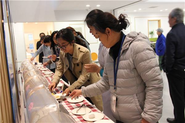 南瓜包,贝壳包,水晶白玉饺,五彩发糕,动物饼干,香蕉蛋糕,南瓜派,菊花酥,肉松卷,桂圆雪梨银耳汤。家长们看见一盘又一盘色彩丰富造型多样的点心,惊叹幼儿园的面点可以如此精美,完全媲美艺术品。