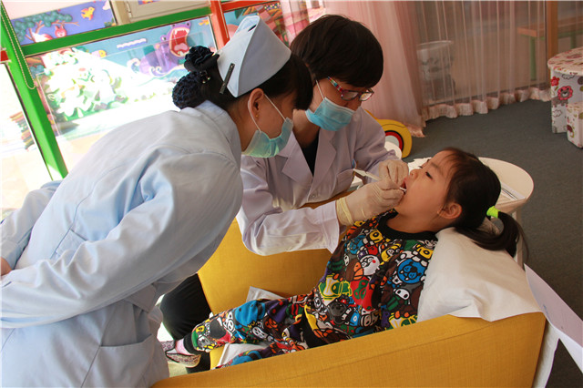一年一度的幼儿牙齿检查开始了,今年幼儿园邀请了杏园金方国医医院的牙科大夫为小朋友做了细致的牙齿检查。