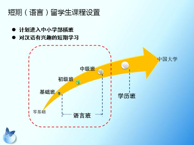 留学指导:为每位学生制定留学规划,帮助学生实现从汉语零基础到报考中国大学的一站式飞跃。历届学生均以优异成绩升入北京大学、清华大学等中国一流高校深造。