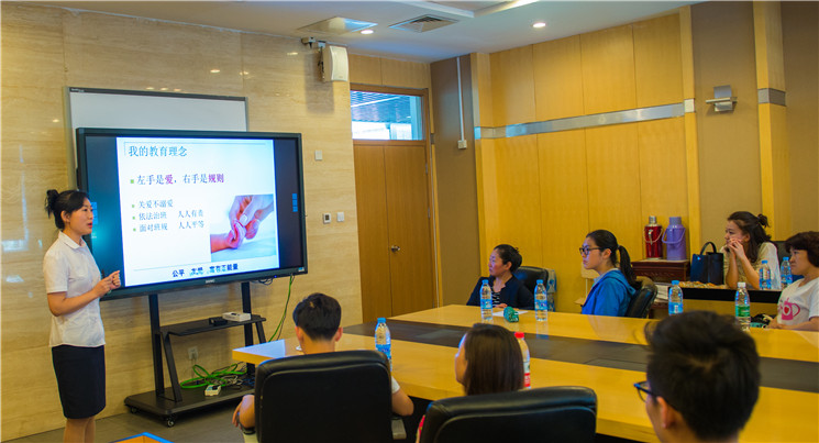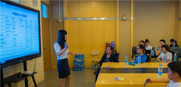 参观结束后,招办主任宋老师、升学指导闫老师为家长们介绍AP中心的概况,她们凝练简介的演说迎来阵阵掌声。家长们被AP 中心的教学理念深深吸引。 “因材施教,自主课堂,多元评价,发展个性”的恒信彩教育教学模式赢得家长们的一致赞誉。AP中心课程既扎根国内的基础课程又融合了国际课程,培养了一批又一批既有民族情怀又具有国际视野的学生。 接下来新初一和新高一的班主任们与大家见面交流,便于家长对老师有更多的了解。近几年随着中国经济的发展,出国留校的人数越来越多,AP中心学位也越来越紧俏,因此本次体验活动的最后,学部对来体验的孩子进行了笔试和面试,择优录取。