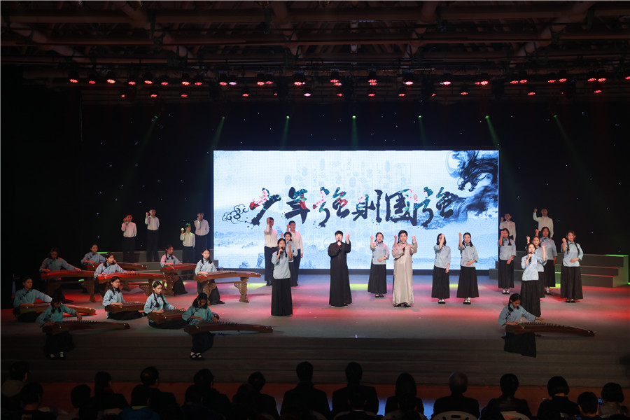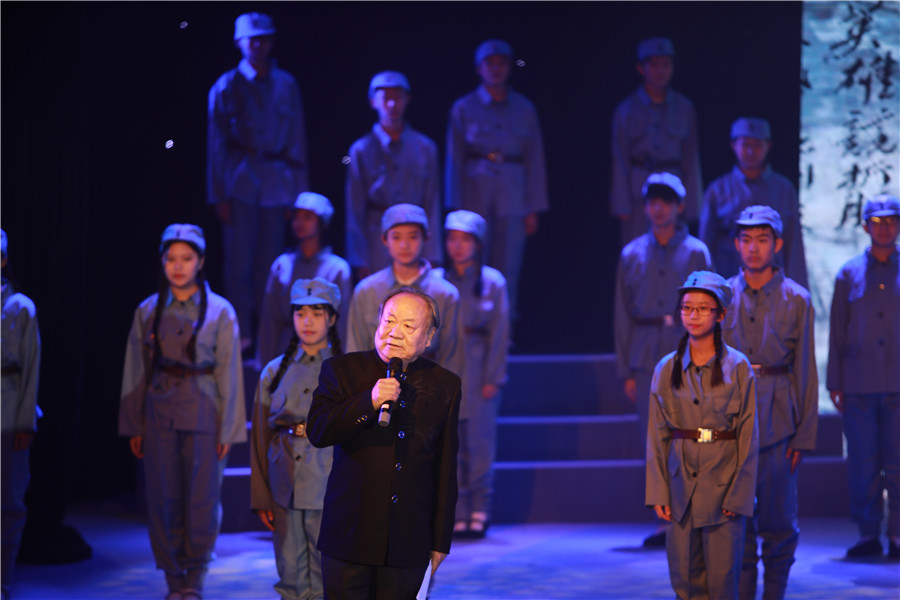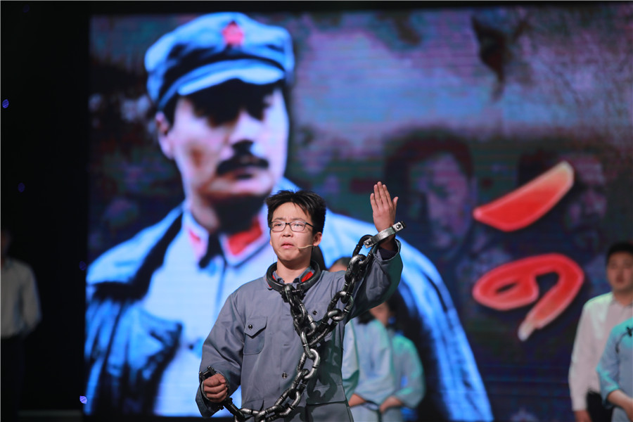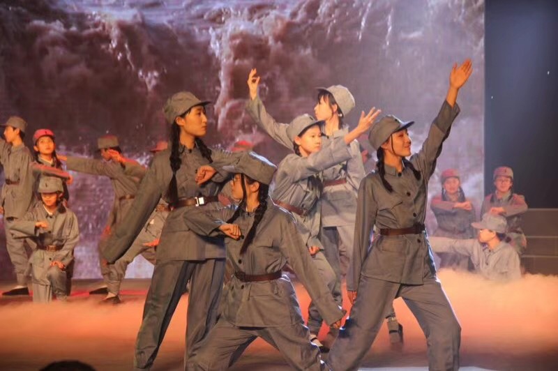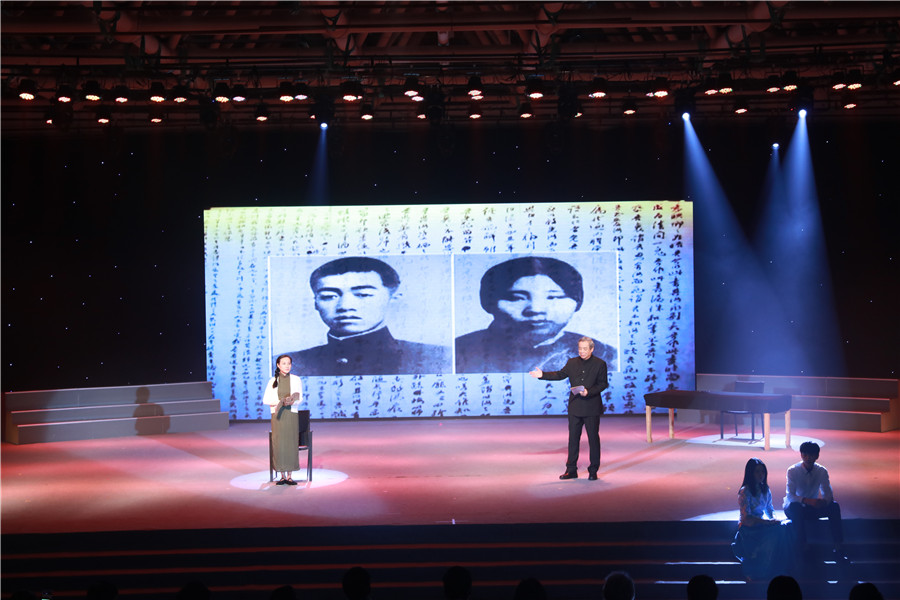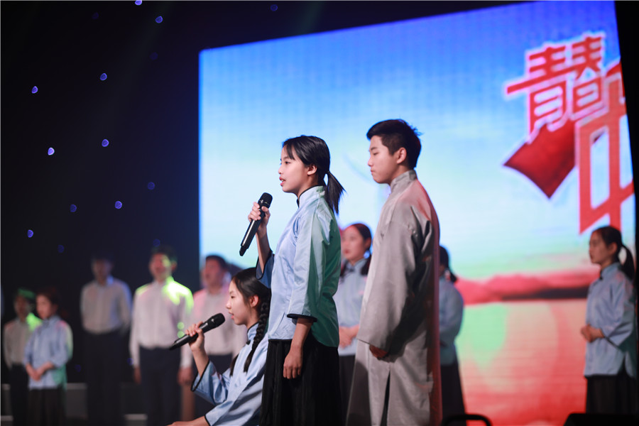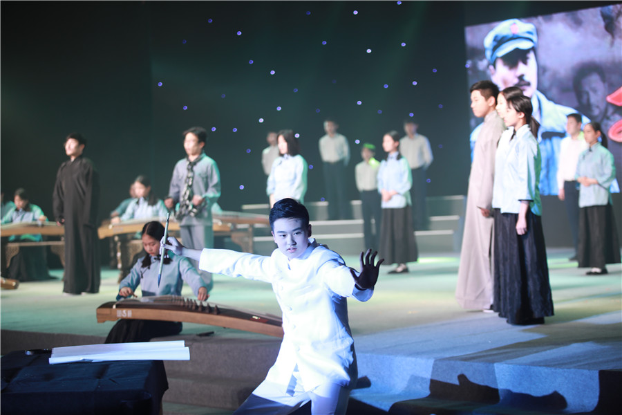同学们用朗诵、戏剧、器乐等多种艺术形式,讲述林则徐、林觉民、李大钊、方志敏、毛泽东等仁人志士的故事,展现自1840年到1949年新中国成立百年来奋斗不息、上下求索的精神。