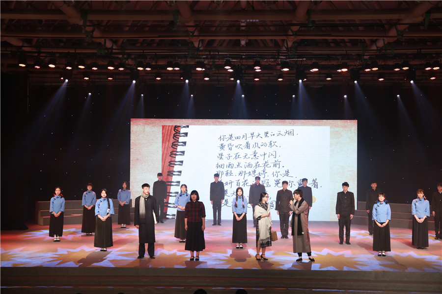 还有卞之琳、冰心等民国诗人群,他们是岁月深处的沉香,给我们送来一股文艺范儿的小清新。同学们在演出中带人们重温了徐志摩的《再别康桥》、林徽因的《你是人间四月天》、卞之琳的《断章》和冰心的《 成功的花 》。