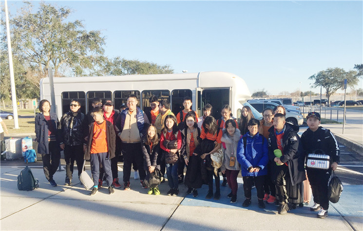 1月30日早晨6点30分,由倪霄菲老师带队的15名交换生出发了。此次交换的学校是位于美国佛罗里达州坦帕市的七泉中学。总校校长李放大博士、AP国际中心校长侯力老师前来为学生们送行。
