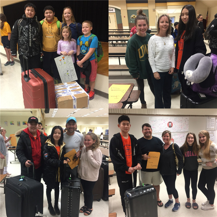 寄宿家庭与孩子们真诚地拥抱、握手,有的为孩子们送上美丽的鲜花,有的为孩子们准备了点心,学生和寄宿家庭爸爸妈妈们互相介绍着自己,他们的真诚与友好让孩子们一见如故,也让我们觉得这一趟舟车劳顿是值得的。寄宿家庭与学生见面会由七泉中学主任David Martindale主持,学校副校长Susan Seirbert代表七泉向学生们致欢迎辞,最后所有学生和寄宿家庭一起合影留念,将这珍贵的一刻定格。