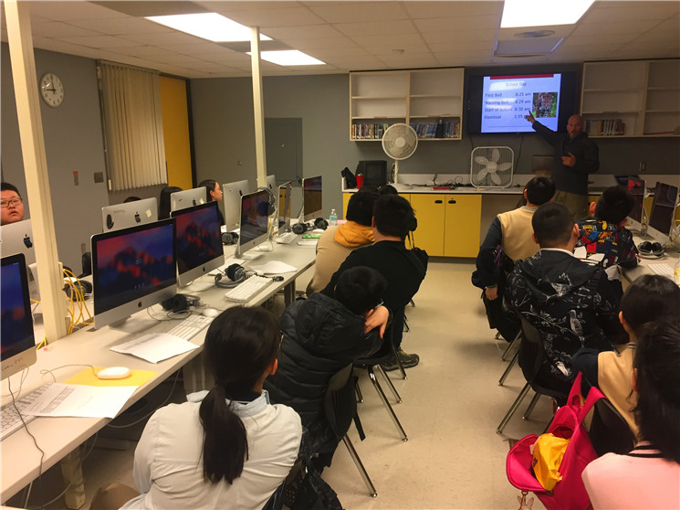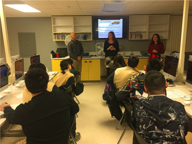 在开学第一课中,校长Cortney Cantt代表七泉中学向孩子们致以最热烈的欢迎,接着,学校主任David担任主讲,他耐心地为孩子们介绍了有关七泉中学的一切,包括学校的规章制度、作息时间、学生课表与教室、课外活动等,学生们用心地听、认真地记。经过一个小时的讲解与交流,孩子们对这所学校已有了较为全面的了解。