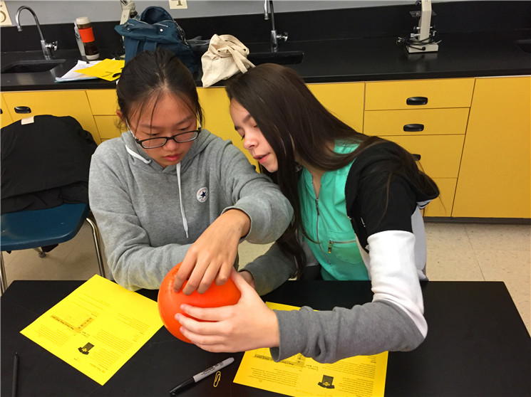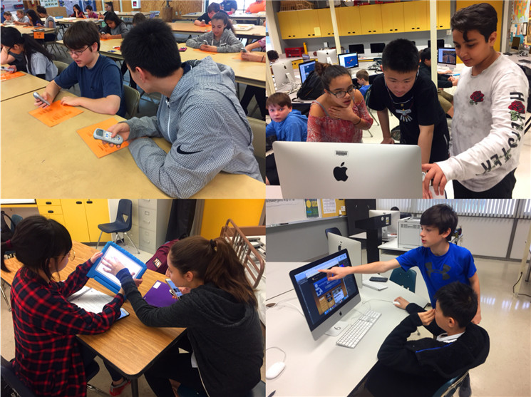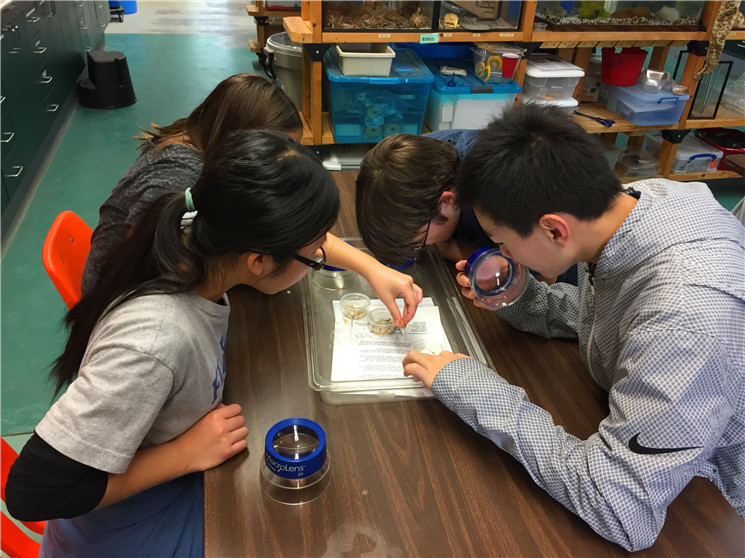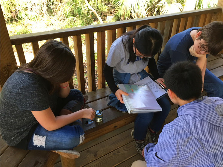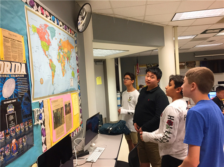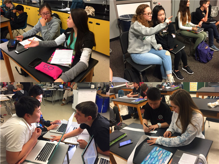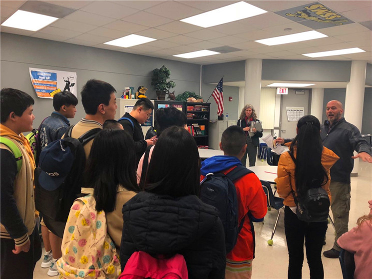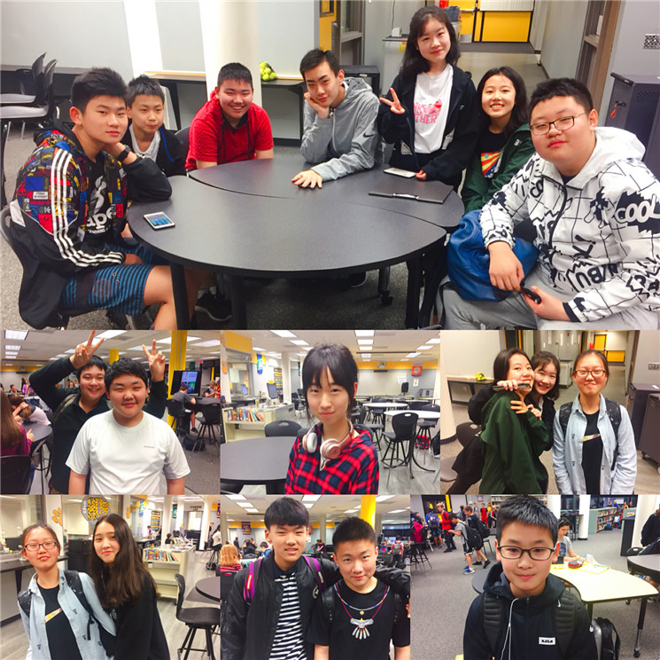 七泉中学实行走班教学,每一个学生都有根据他们实际情况而定制的个性化课表,孩子们每天上6节课,每个课间只有3到4分钟时间换教室。下课铃声一响,就能看到我们的中国学生背着书包前往下一间教室,每当这时,总能看到他们身旁有美国学生与之友好地寒暄、热情地聊天、或主动帮助他们寻找教室。课堂上,也尽是我们的孩子和美国孩子坐在一起研究讨论、互帮互助的美好画面。在美国师生真诚的帮助与热情的感染下,孩子们变得更加勇敢与自信,也能够主动、大胆地与美国同学聊天。