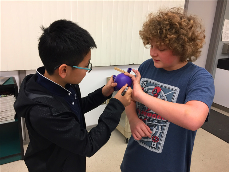 科学课上,我们巧手做实验,气球被看做是外太空,气球上的几个点是各个星球,我们手动测量他们之间的距离,然后随着气球的不断增大,我们需要认真记录并研究不断变化的数据。