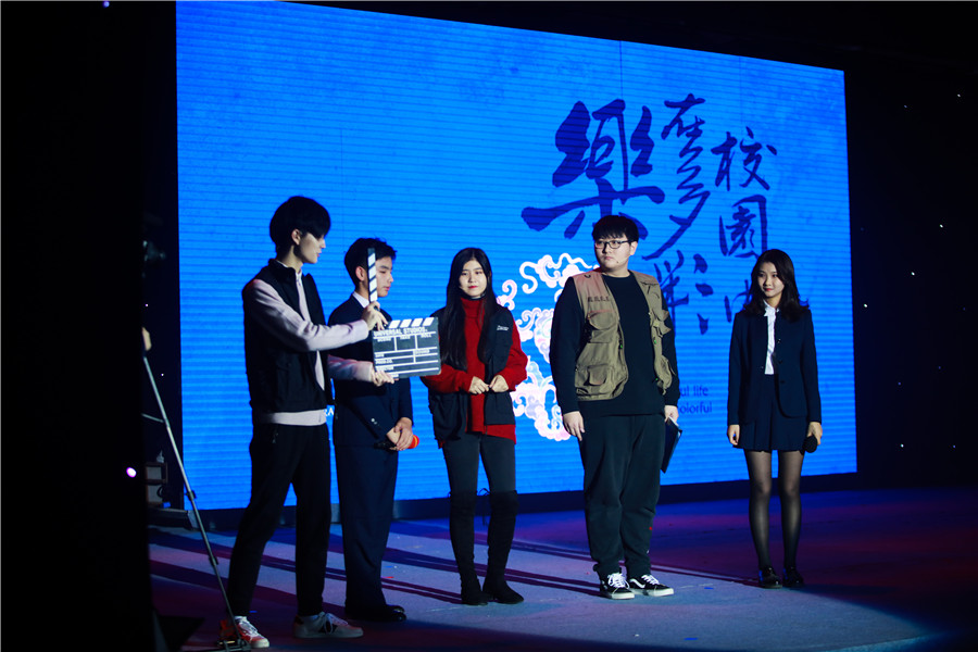 高一年级导演李琳:我们的表演内容是《乐在课堂上》,主要是拍摄教室里的场景。诙谐幽默,体现同学的多才多艺。