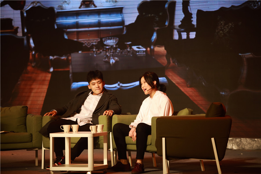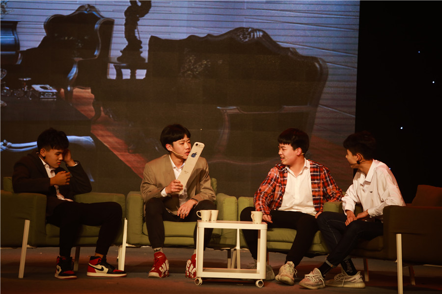 AP国际中心年度大戏拉开帷幕,几个学生导演在舞台上说起了戏。没错,节目开始之前,出现在舞台上的就是我们这台大戏的导演,他们都是学生导演。本次年度大戏,由AP 国际中心学生自编、自导、自演,充分发挥学生的想象力和创造力,为大家呈现了一场别出心裁的年度作品。