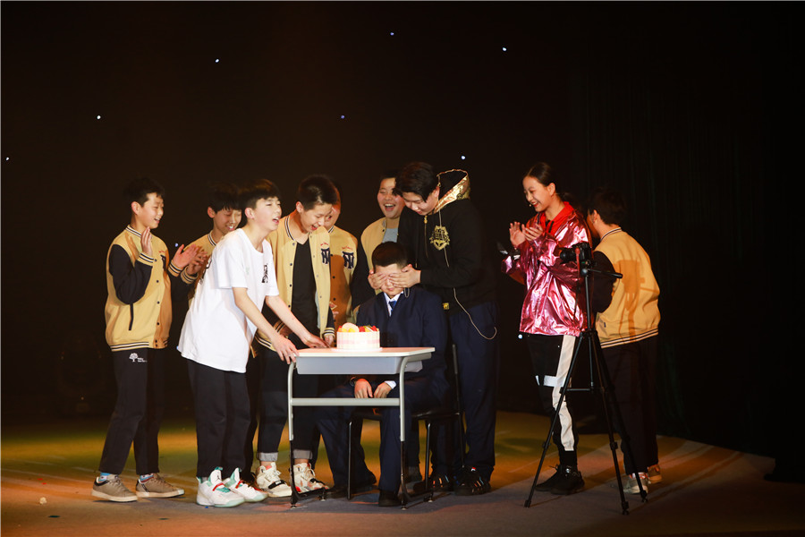 初一年级导演胡响齐:万导,我负责的部分是《乐在生活区》。我们的副班主任老师,马上过生日了,和我们一起给老师开生日party吧。