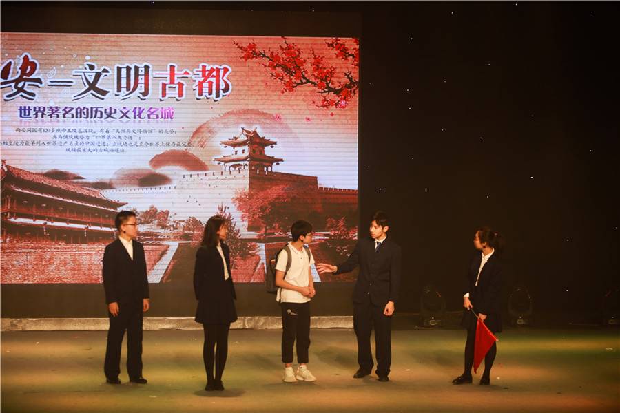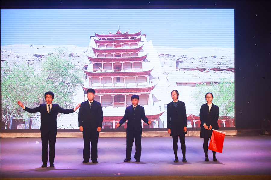 研学西安,《多彩大唐》,同学们用影视再现的手法,带领大家一起进入多彩的大唐盛世;重走丝绸之路,踏上“一带一路”,研学小组的同学来到了敦煌,鸣沙山、月牙泉、莫高窟,《多彩敦煌》,再现飞天舞。