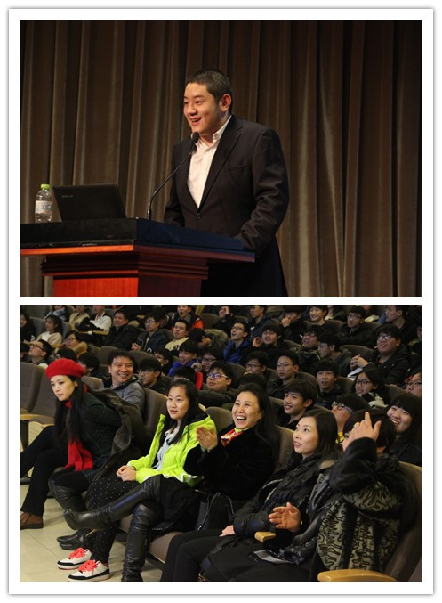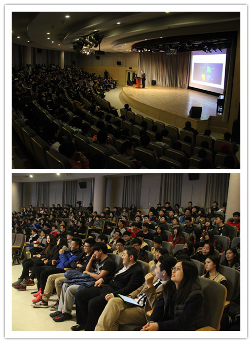 曾博群同学首先表达了对母校的感激与怀恋之情,然后以“我的申请”之路为题,介绍了申请美国大学的四个基本条件:标准化考试、个人主文书、社会实践活动、老师推荐信,以及自己是如何从这个方面去努力的,介绍了自己的一些经历和经验。