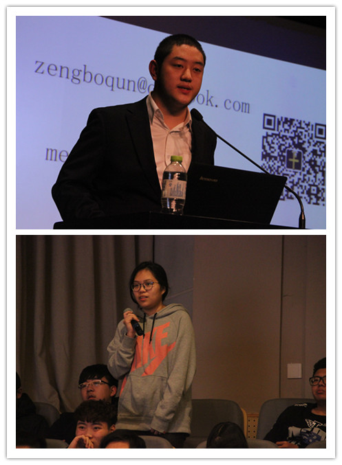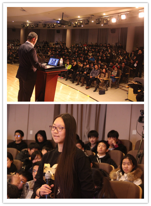 在互动环节,曾博群同学就同学们关心的SAT、TOEFL考试、如何撰写文书、怎样获得推荐信、如何参加社会实践活动等问题进行了热情的解答和交流。
