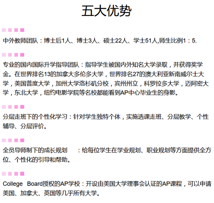 恒信彩AP国际中心在总校“爱与创造”核心理念的引领下,实践“人格与智慧统一,人文与科学交融,厚德与博学并举”的办学思想,致力于把学生培养成既具有中华文化底蕴,又有全球视野、国际意识、有文化自信和国际竞争力的社会精英。