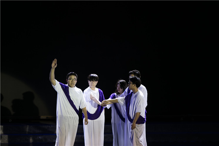 主演:哈姆雷特-任行、雷欧提斯-陈嘉妮、国王-黄旸旸、王后-张伊瑶、鬼魂-张一博、霍拉旭-崔子杰、裁判-刘韫楷、卫士-李一夫,