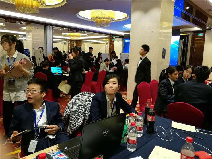 在第一天的学习中,我们接触到了平时上学所有的必修课以外的知识,与来自世界各地的人相互交流,为以后的比赛打好基础。比赛的时间很快但又觉得漫长,早上八点半到晚上十点钟,身为市场部的我,沉浸在口舌之战中,一切只为了达到自己的目标。让我深刻体验到了一种叫做来自大佬的套路的东西。当然我对我们的业绩还是很满意的。
