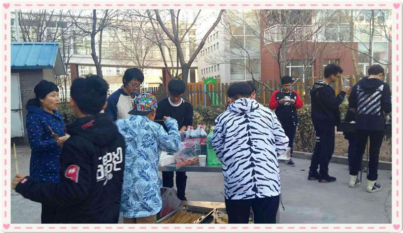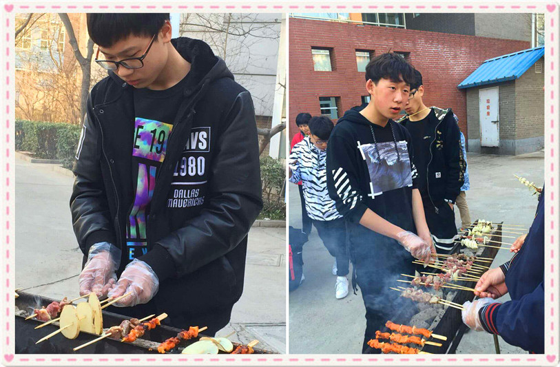 3月11日周五下午16:00—17:30,老师们组织留校学生在学校食堂自己穿串、自己学习烧烤,同学们不仅品尝了美食还学会了烧烤技能,同时也学会了合作与分享。在生活区副班主任老师还给留校生亲手烙制韭菜盒子和熬制去火的苹果汤。虽然留校生远离家乡,但此时的他们早已经把恒信彩学校当成了自己第二个家,因为这里不仅温暖,而且还有浓浓的爱。