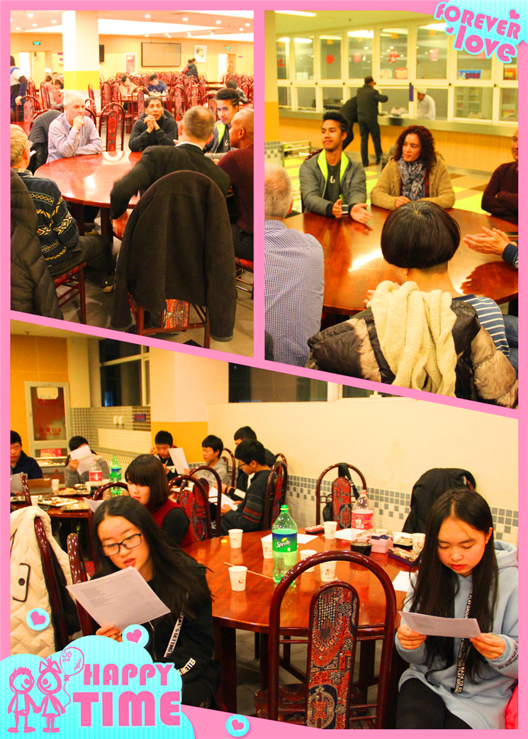 答:能够和全体留校生包括外籍学生还有外教及中国教师度过平安夜。