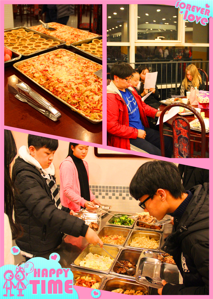 爱是没有国界的,快乐是属于全人类的。大家围坐在一起,喜笑颜开,喜气洋洋,手捧美酒,互道祝福。我们可亲可敬的王建校长,充满爱心的崔艳军主任,也来到我们中间,向老师同学们致以节日的祝福!并陪伴孩子们到活动结束!大家沉浸在幸福喜悦之中,感谢恒信彩对师生的关怀,感谢领导对师生的厚爱!