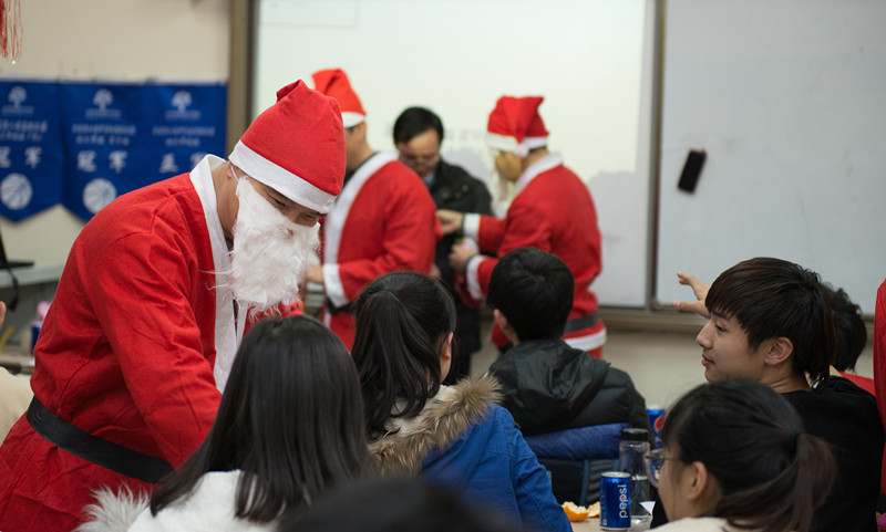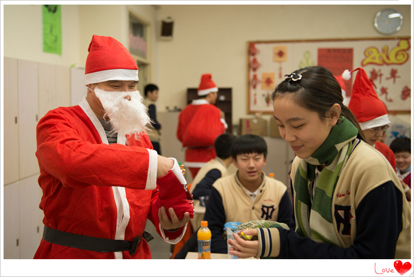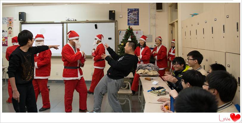 12月24日是一年一度的圣诞平安夜。在西方国家,圣诞节大大超过了新年,是一个全民的节日,圣诞老人是圣诞节最受喜爱的象征和传统。平安夜当晚,AP国际中心的领导们扮成圣诞老人为师生带去一份惊喜和祝福:“Merry Christmas(圣诞节快乐)!” 他们所到之处带来一片惊呼,拿着一份份小礼物,同学们甜在心头。
