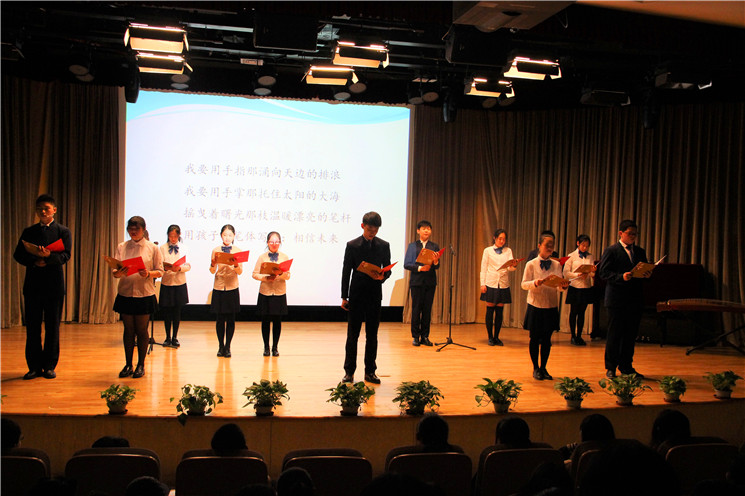 青春的泪,青春的梦;年轻的相信,年轻的未来。《青春》开场诗歌十七名同学的集体朗诵,低缓、深沉,倔强、豪气,势,不可挡!
