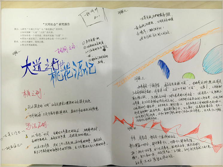 通过这次活动,让我们更深刻的体会到什么是大同,什么是大道。而《桃花源记》更让我们认识到大同社会的真实样子。