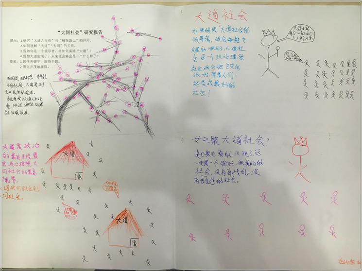 这次大同社会的研究报告,让我对课文的理解加深了很多,也从中学到了很多,有了大道才能有大同,所以要从小事做起,也认识到了什么是政治的最高理想。从古至今,有很多人要达到大同,但都没有实现,但只要团结,一起努力,每个人都多一点善,我们就一定可以达到大同。