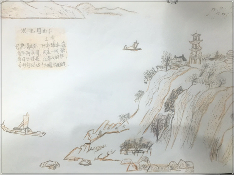 我在做这篇赏析时,我脑海中常常浮现出一个优美的画面。但当我用笔将他绘制下来后,对古诗的意境又多了层理解。古诗中的诗情,用画意诠释的很美,我觉得再也没有比用水墨山水来描绘古诗意境美妙的了。